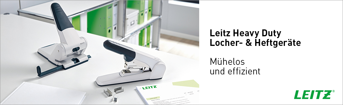 Das Leitz Heavy Duty Sortiment aus Bürolochern und Heftgeräten bietet eine breite Auswahl an leistungsstarken Werkzeugen, die speziell für den professionellen Einsatz entwickelt wurden. Ob für das Lochen grosser Papierstapel oder das Heften umfangreicher Dokumente – diese robusten und langlebigen Produkte stehen für Präzision, Zuverlässigkeit und Komfort.