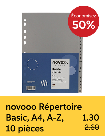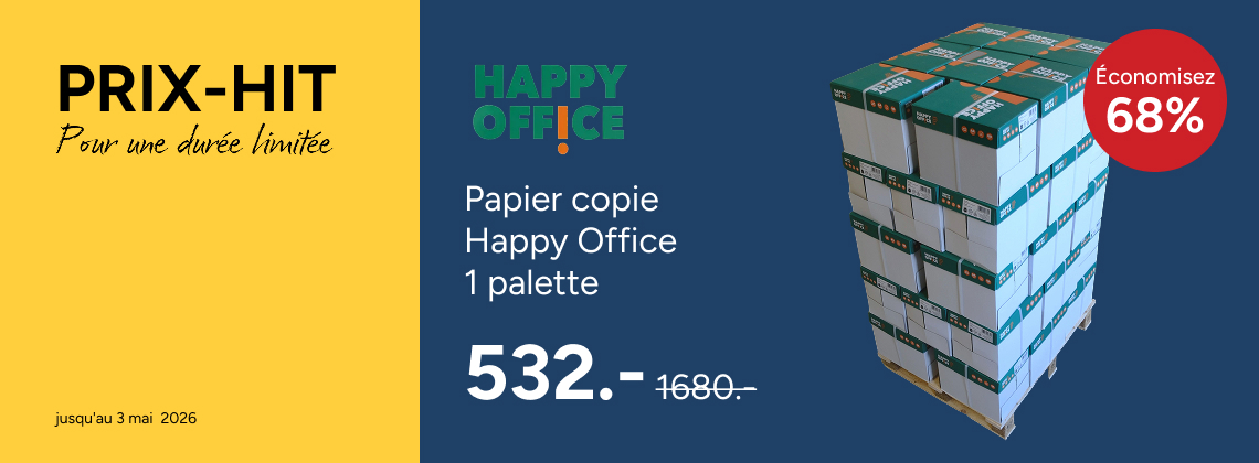 Si vous commandez avant 17 heures, la marchandise vous est livrée dès le lendemain, gratuitement. Avec les commandes à partir de CHF 100.– (hors TVA) nous vous offrons le supplément pour petites quantités de CHF 9.50. De plus, chaque commande de fournitures de bureau vous permet de profiter de notre garantie Best Price, en vous proposant toujours le prix le plus bas. À partir d'un certain volume de vente, vous pouvez également bénéficier de notre programme de fidélité, Profit System, et de ses nombreux avantages. Notre assortiment se caractérise par une combinaison bien pensée de marques internationales et locales, complétées par nos propres marques à prix intéressant.