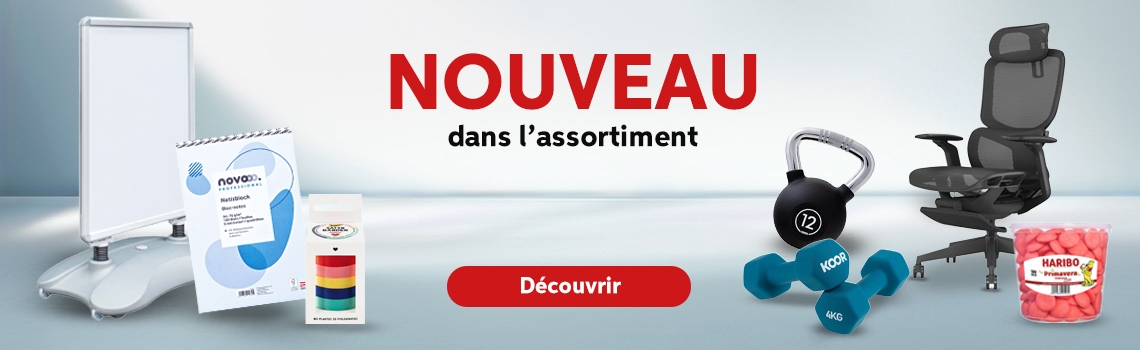 Si vous commandez avant 17 heures, la marchandise vous est livrée dès le lendemain, gratuitement. Avec les commandes à partir de CHF 100.– (hors TVA) nous vous offrons le supplément pour petites quantités de CHF 9.50. De plus, chaque commande de fournitures de bureau vous permet de profiter de notre garantie Best Price, en vous proposant toujours le prix le plus bas. À partir d'un certain volume de vente, vous pouvez également bénéficier de notre programme de fidélité, Profit System, et de ses nombreux avantages. Notre assortiment se caractérise par une combinaison bien pensée de marques internationales et locales, complétées par nos propres marques à prix intéressant.