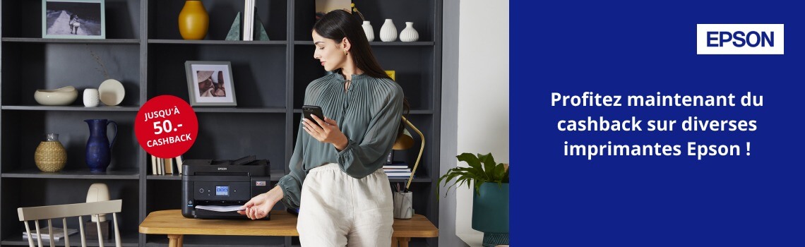 Acheter les imprimantes Epson mentionnées ci-dessus et bénéficiant du Cashback entre le 15.09.2024 et le 31.03.2025.
