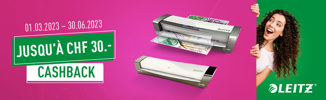 Et le meilleur dans tout ça : vous économisez maintenant de l'argent ! Pour une sélection de plastifieuses, vous recevez rapidement et facilement jusqu'à 30 CHF de cashback !